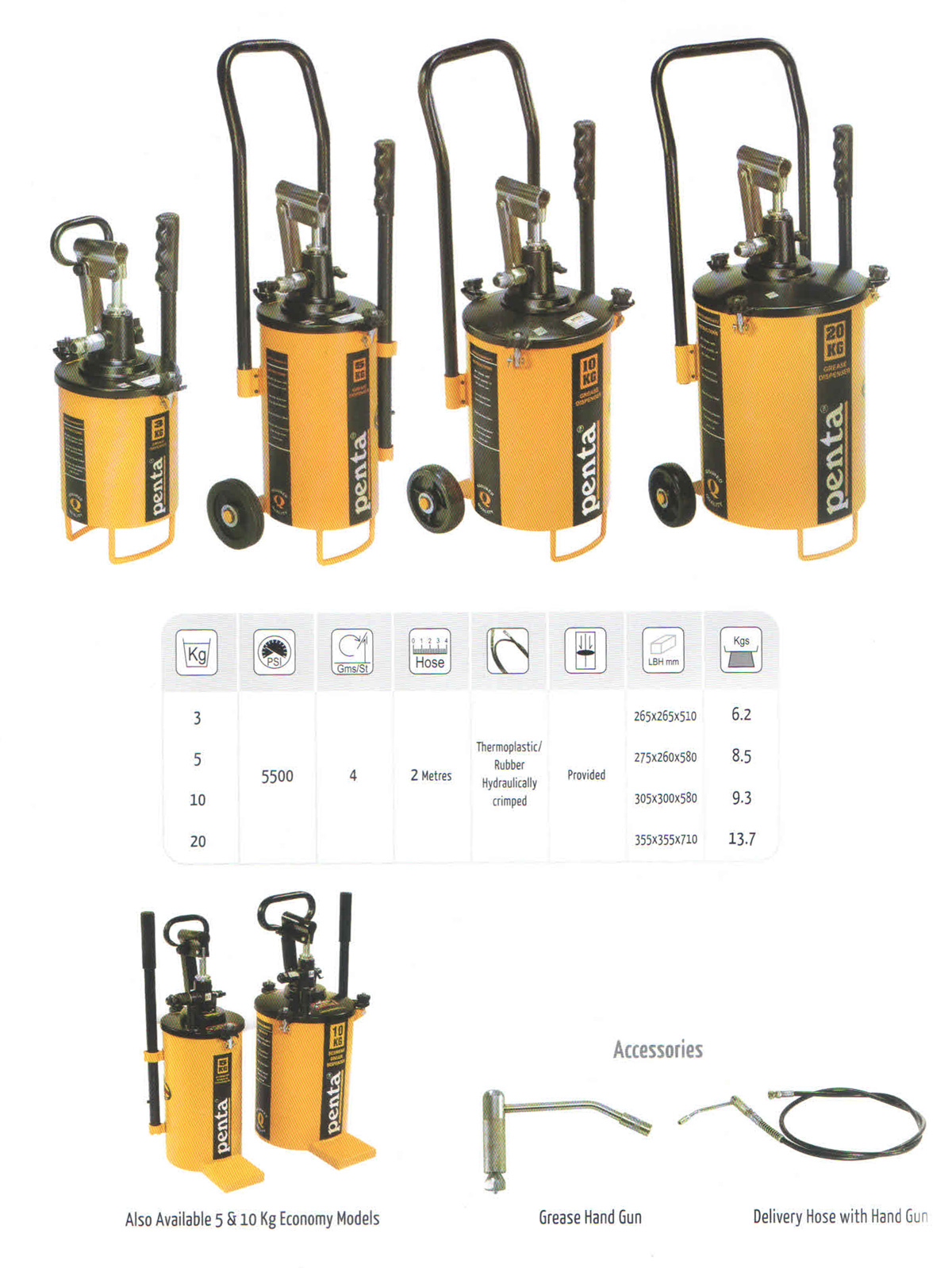 A wide range of Hand Operated Grease Dispensers. The all aluminum alloy pump head ensures long life and trouble free operation. The greasers are provided with castors for easy mobility. The anti - airlock pressure plates ensures easy flow of grease. The product meets the highest standards in quality and comes in powder coated finish with all the external components nickel plated for longer life.